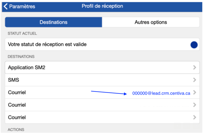 Dans la section Destinations, ajoutez une nouvelle destination de type Courriel afin de configurer la connexion entre ImmoContact et votre CRM Centiva.